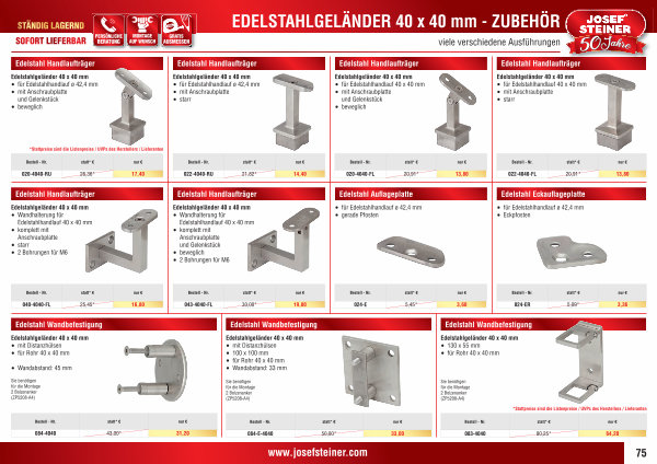 EDELSTAHLGELÄNDER 40 x 40 mm- ZUBEHÖR viele verschiedene Ausführungen
