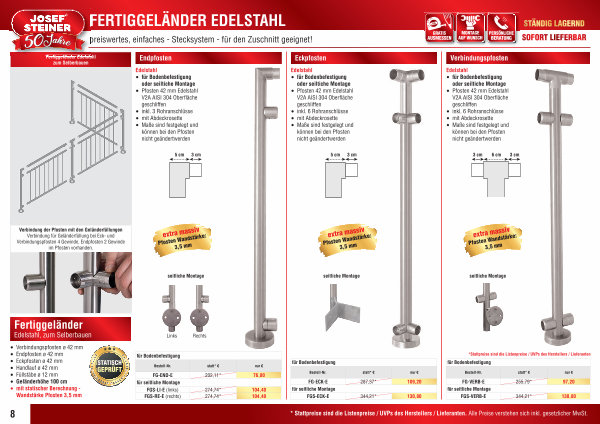 FERTIGGELÄNDER EDELSTAHL preiswertes, einfaches- Stecksystem- für den Zuschnitt geeignet!