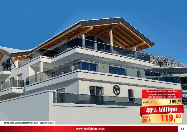 GANZGLASGELÄNDER AUFGESETZTE MONTAGE- VSG DOPPELGRAU
