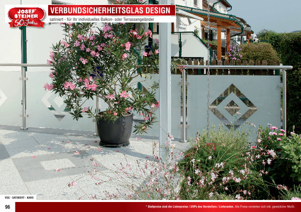 VERBUNDSICHERHEITSGLAS DESIGN satiniert- für Ihr individuelles Balkon- oder Terrassengeländer