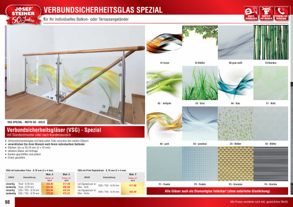 Verbundsicherheitsgläser( VSG)- Spezial mit Standardmuster oder nach Kundenwunsch