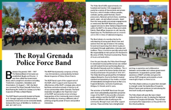 Over the past decades the Police Band through its renowned musical performances was ranked and still ranked the best performing Band on the Island of Grenada and the Caribbean . This is mainly as a result of its Dance Section that was introduced between the periods of 1970-1971 . The Police Band has produced five ( 5 ) National calypso Monarchs . Due to the Band ’ s musical standard and popularity , it has made a number of international and regional tours to the U . S . A , England , Barbados , Suriname Guadeloupe , Antigua , St . Vincent , and St . Lucia .