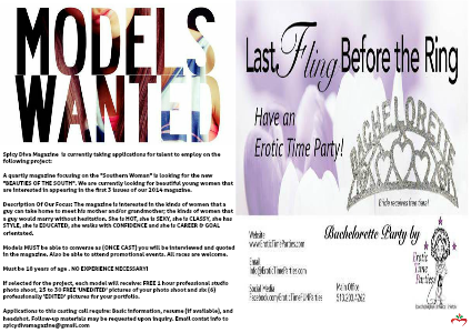 A quartly magazine focusing on the "Southern Woman" is looking for the new "BEAUTIES OF THE SOUTH". We are currently looking for beautiful young women that are interested in appearing in the first 3 issues of our 2014 magazine.