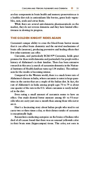Alzheimer’s disease in India, where curcumin is eaten in large quan-