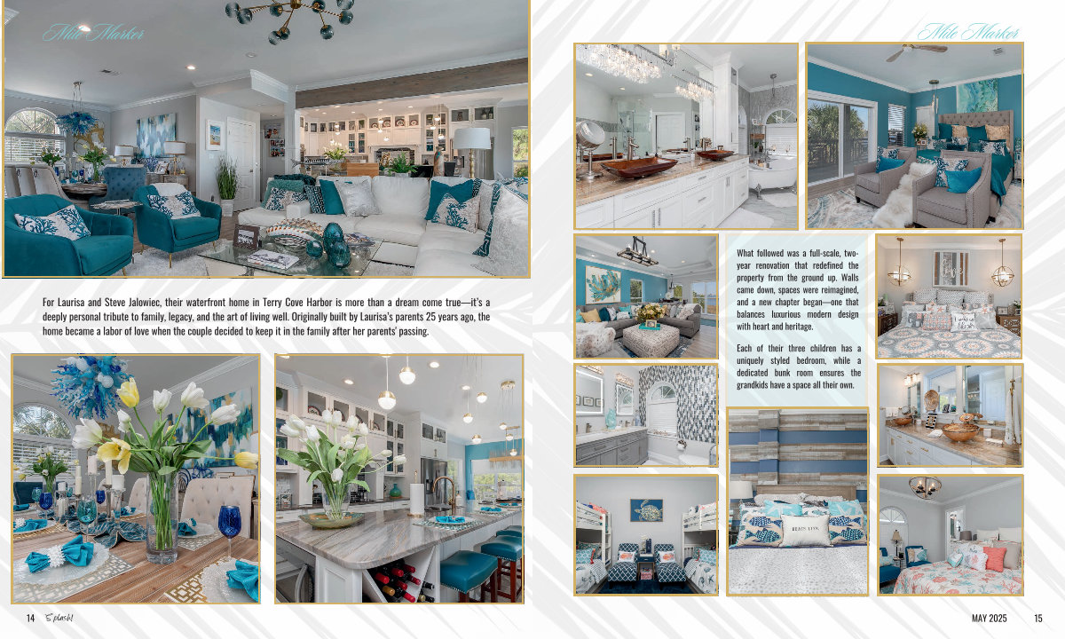 For Laurisa and Steve Jalowiec, their waterfront home in Terry Cove Harbor is more than a dream come true— it’ s a deeply personal tribute to family, legacy, and the art of living well. Originally built by Laurisa’ s parents 25 years ago, the home became a labor of love when the couple decided to keep it in the family after her parents ' passing.