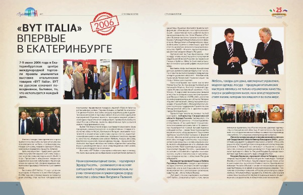 7-9 июня 2006 года в Екатеринбургском центре международной торговли прошла знаменитая выставка итальянских то варов « BYT Italia ». BYT на русском означает повседневное, бытовое, то, что используется каждый день.
