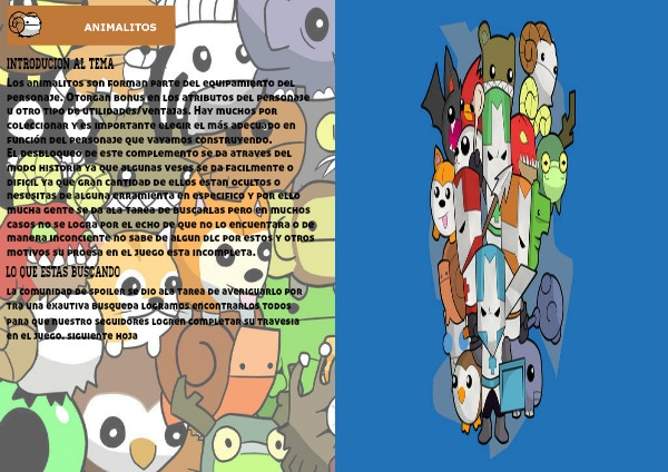 Los animalitos son forman parte del equipamiento del personaje. Otorgan bonus en los atributos del personaje u otro tipo de utilidades/ventajas. Hay muchos por coleccionar y es importante elegir el más adecuado en función del personaje que vayamos construyendo.