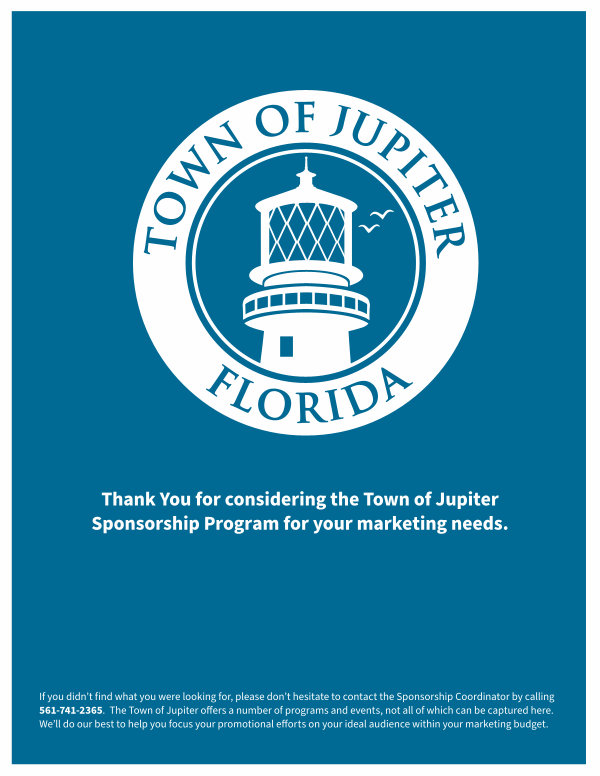 If you didn’ t find what you were looking for, please don’ t hesitate to contact the Sponsorship Coordinator by calling 561-741-2365. The Town of Jupiter offers a number of programs and events, not all of which can be captured here. We’ ll do our best to help you focus your promotional efforts on your ideal audience within your marketing budget.