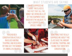 SOMETHING THAT REALLY SURPRISED ME ABOUT THIS CLASS WAS THE AMOUNT OF HUNTING , TRAPPING , AND FISHING THAT WENT INTO CONSERVATION .