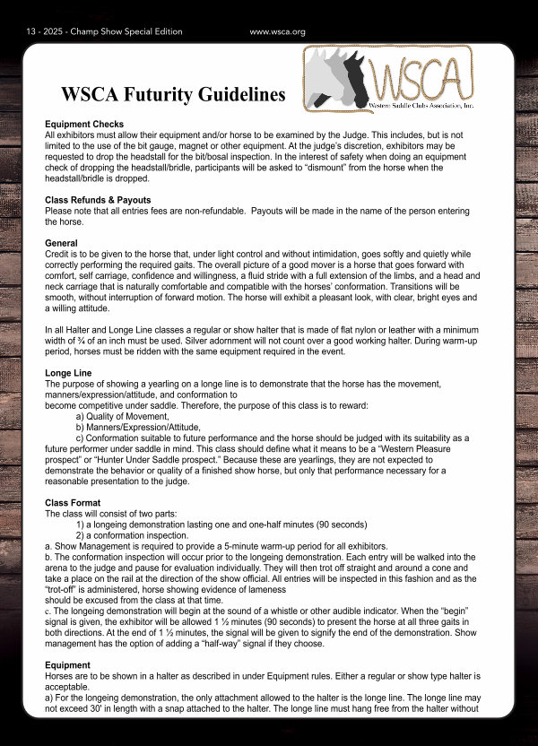 WSCA Futurity Guidelines