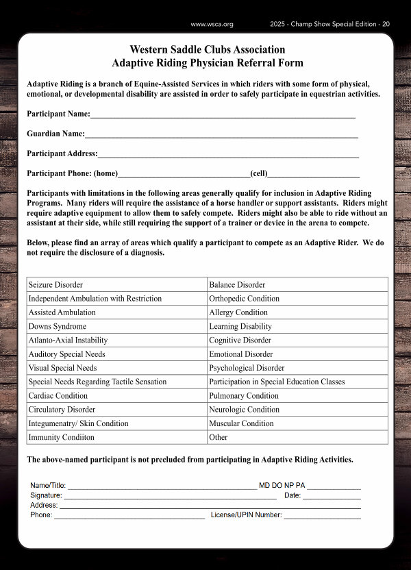 Western Saddle Clubs Association Adaptive Riding Physician Referral Form