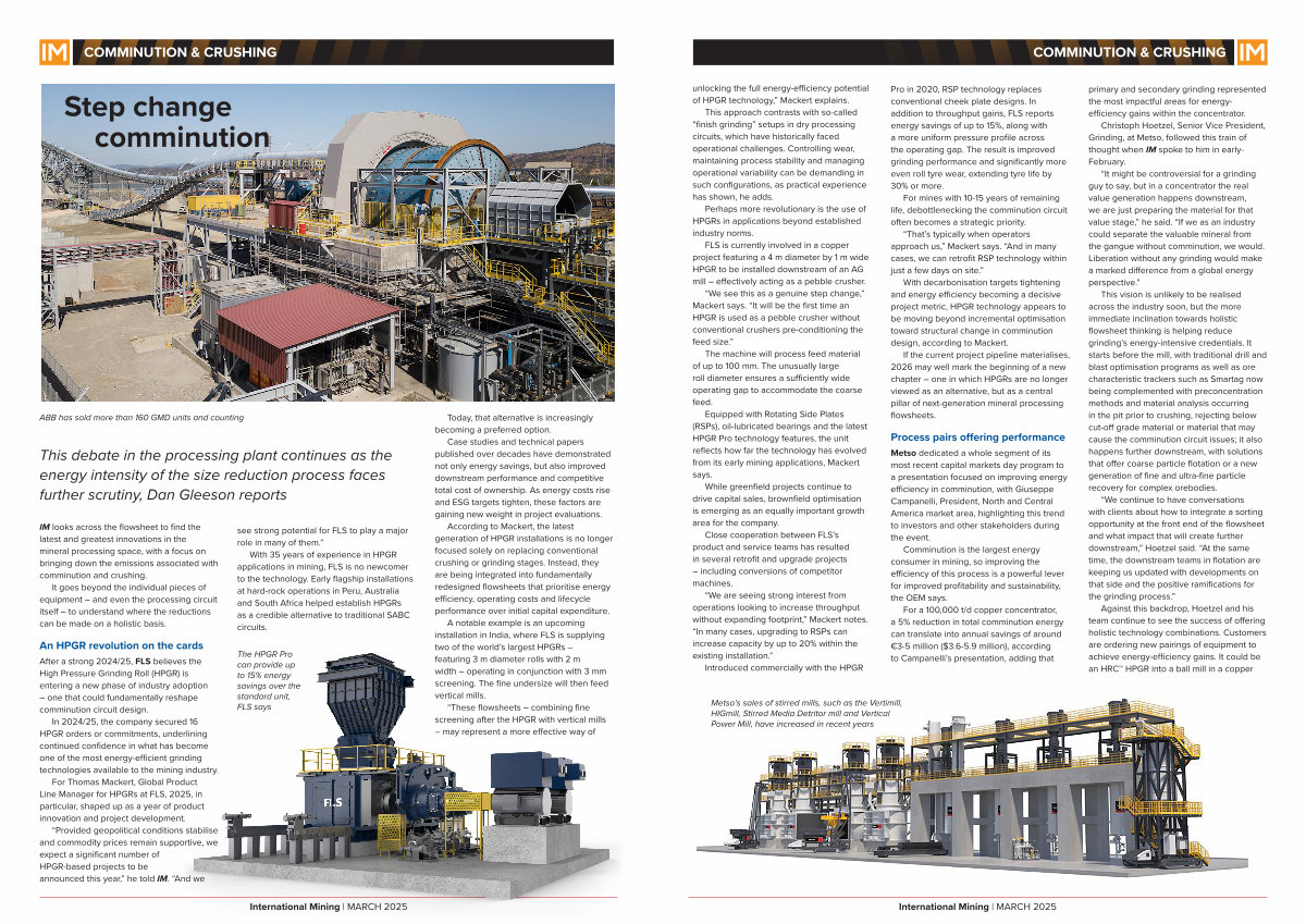 “ Provided geopolitical conditions stabilise and commodity prices remain supportive, we expect a significant number of HPGR-based projects to be announced this year,” he told IM.“ And we see strong potential for FLS to play a major role in many of them.”