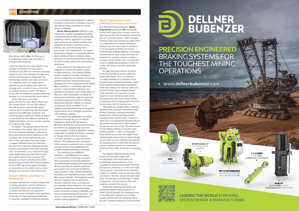 Becker Mining Systems’ BRS4.0 it says represents a further development beyond conventional belt rip detection systems. By adopting a holistic approach to conveyor belt monitoring, the system enables early detection of critical conditions such as defects, rips, and belt misalignment- issues that, if left unaddressed, can lead to progressive damage or unexpected failures. Early visibility of these conditions allows operators to intervene proactively, reducing the risk of costly repairs and unscheduled shutdowns.