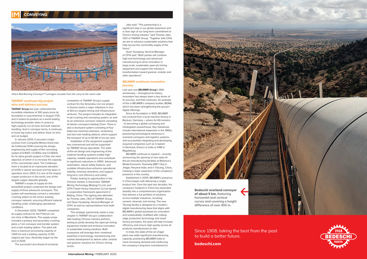 Bedeschi overland conveyor of about 5 km, featuring horizontal and vertical curves and covering a height difference of over 400 m.