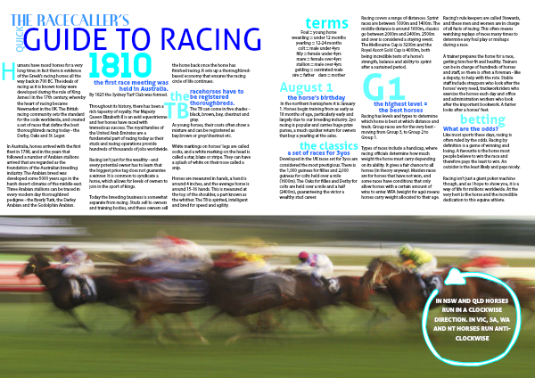 IN NSW AND QLD HORSES RUN IN A CLOCKWISE DIRECTION. IN VIC, SA, WA AND NT HORSES RUN ANTI-CLOCKWISE