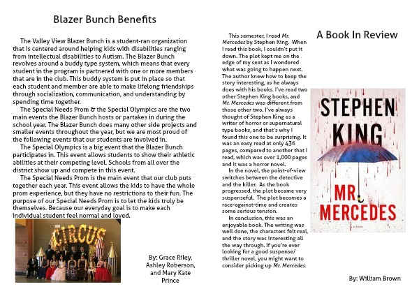 This semester, I read Mr. Mercedes by Stephen King. When I read this book, I couldn’t put it down. The plot kept me on the edge of my seat as I wondered what was going to happen next. The author knew how to keep the story interesting, as he always does with his books. I’ve read two other Stephen King books, and Mr. Mercedes was different from those other two. I’ve always thought of Stephen King as a writer of horror or supernatural type books, and that’s why I found this one to be surprising. It was an easy read at only 436 pages, compared to another that I read, which was over 1,000 pages and it was a horror novel.