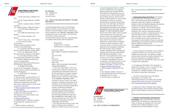 -Star Diversity Award submissions from 13 the previous year to 29 new nominations . 3 . Questions regarding the National Commodore ' s Auxiliary Diversity Award may be directed to Stephen Minutolo , COMDT ( CG-BSX ), at ( 202 ) 372-1267 or Stephen . J . Minutolo @ uscg . mil . 4 . This message is valid until 01 June 2021 . 5 . Ms . Michelle Godfrey , Director of Civilian Human Resources , Diversity and Leadership ( CG-12 ), sends . 6 . Internet release is authorized .