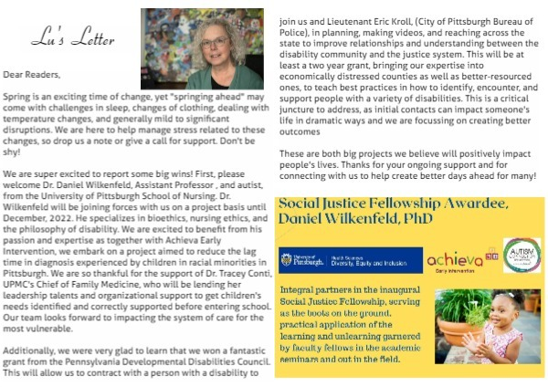 join us and Lieutenant Eric Kroll, (City of Pittsburgh Bureau of Police), in planning, making videos, and reaching across the state to improve relationships and understanding between the disability community and the justice system. This will be at least a two year grant, bringing our expertise into economically distressed counties as well as better-resourced ones, to teach best practices in how to identify, encounter, and support people with a variety of disabilities. This is a critical juncture to address, as initial contacts can impact someone's life in dramatic ways and we are focussing on creating better outcomes