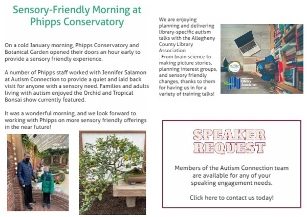 . From brain science to making picture stories, planning interest groups, and sensory friendly changes, thanks to them for having us in for a variety of training talks!