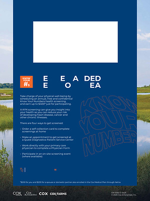 Take charge of your physical well-being by scheduling an annual, free and confidential Know Your Numbers health screening, and earn up to $ 400 * just for participating.