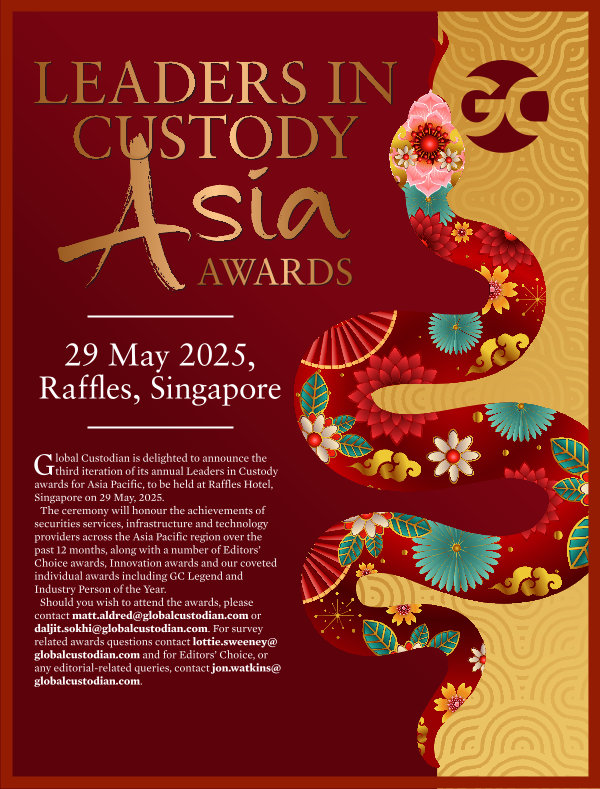 lobal Custodian is delighted to announce the third iteration of its annual Leaders in Custody awards for Asia Pacific, to be held at Raffles Hotel, Singapore on 29 May, 2025. The ceremony will honour the achievements of securities services, infrastructure and technology providers across the Asia Pacific region over the past 12 months, along with a number of Editors’ Choice awards, Innovation awards and our coveted individual awards including GC Legend and Industry Person of the Year. Should you wish to attend the awards, please contact matt. aldred @ globalcustodian. com or daljit. sokhi @ globalcustodian. com. For survey related awards questions contact lottie. sweeney @ globalcustodian. com and for Editors’ Choice, or any editorial-related queries, contact jon. watkins @ globalcustodian. com.