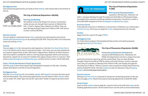 KEY CITY DEPARTMENTS WITHIN ALAMEDA COUNTY