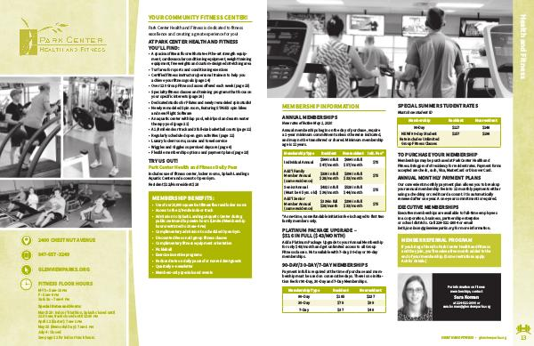 $33/month Memberships may be purchased at Park Center Health and