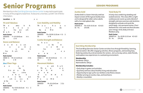 The East Wing Glenview Senior Center enriches lives through friendship , learning , and recreation . We offer engaging activities , fitness programs , and exciting trips , fostering community and connection for seniors . Join us to stay active , make friends , and explore new experiences in a welcoming environment .