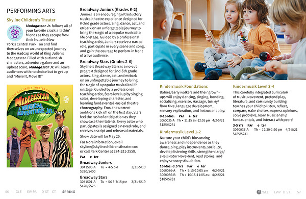 16 Mos.-3.5 Yrs • Park Center 3060036-A Th • 9:15-10:05 am 4 / 2-5 / 21 3060036-B Th • 10:15-11:05 am 4 / 2-5 / 21 $ 185 /$ 231
