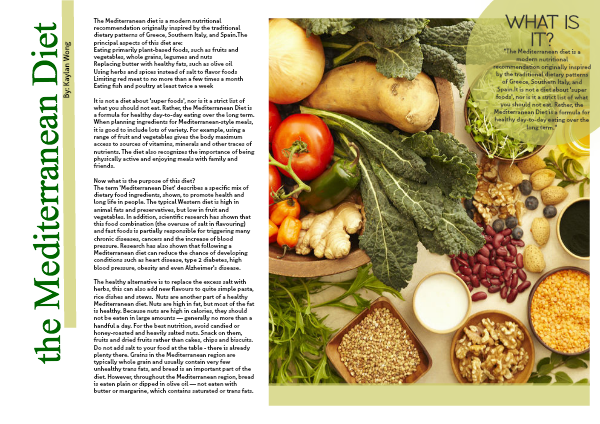 "The Mediterranean diet is a modern nutritional recommendation originally inspired by the traditional dietary patterns of Greece, Southern Italy, and Spain.It is not a diet about 'super foods', nor is it a strict list of what you should not eat. Rather, the Mediterranean Diet is a formula for healthy day-to-day eating over the long term."