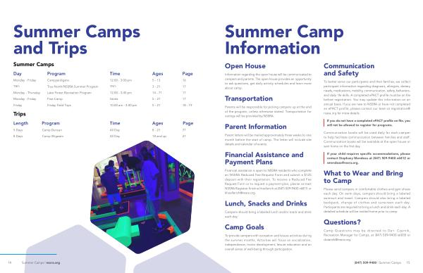 Monday - Friday Campyardigans 12:00 - 3:00 pm 5 - 13 16 TBD True North / NSSRA Summer Program TBD 3 - 21 17 Monday - Thursday Lake Forest Recreation Program 12:00 - 3:45 pm 14 - 21 17 Monday - Friday Post Camp Varies 5 - 21 17 Friday Friday Field Trips 10:00 am - 3:00 pm 5 - 21 18 - 19