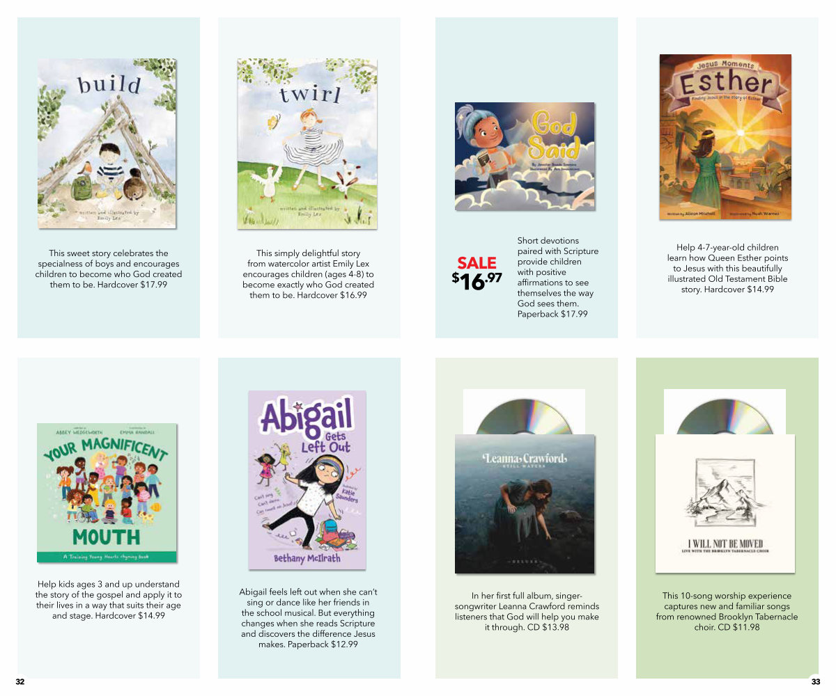 This simply delightful story from watercolor artist Emily Lex encourages children( ages 4-8) to become exactly who God created them to be. Hardcover $ 16.99