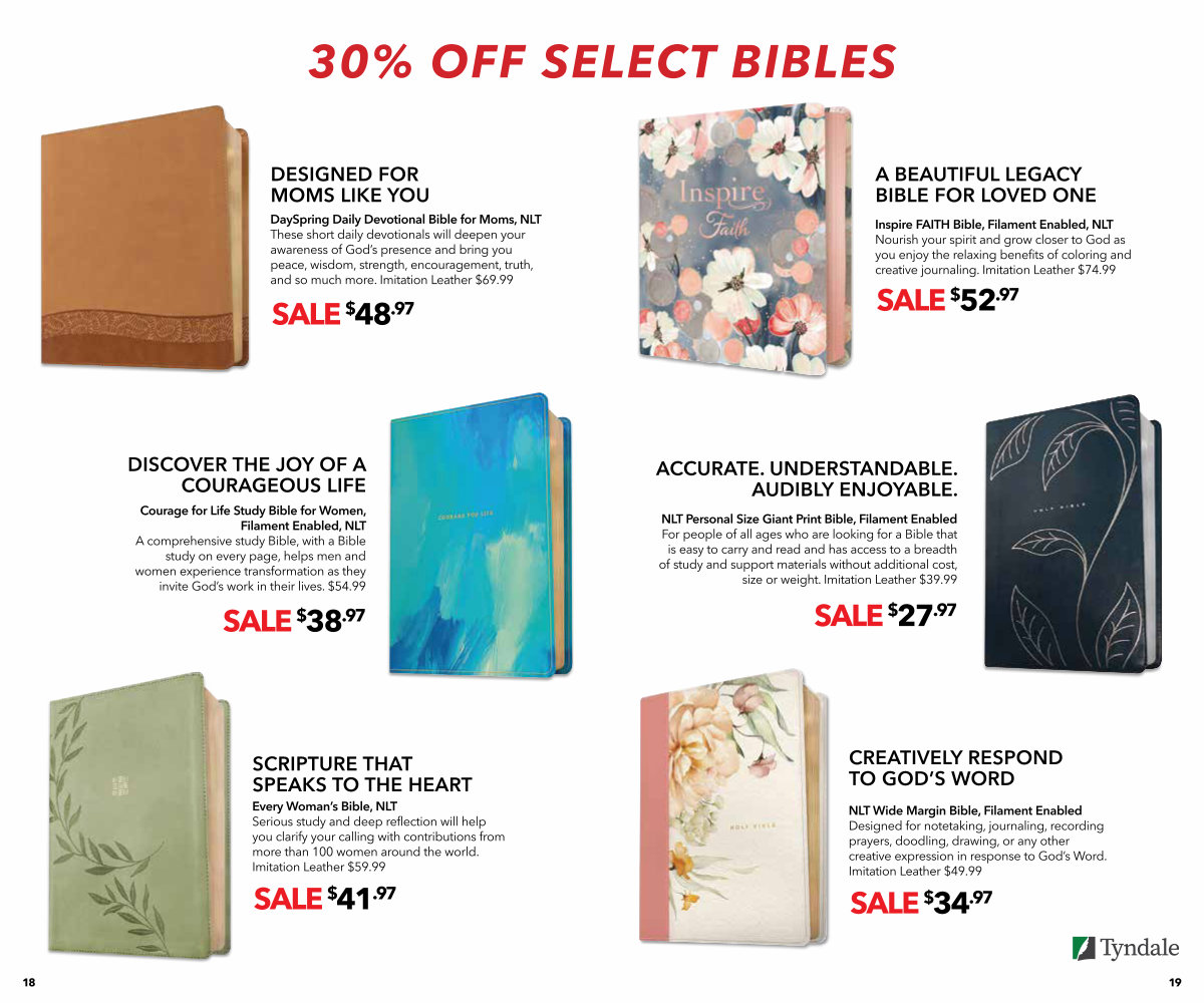 DaySpring Daily Devotional Bible for Moms, NLT These short daily devotionals will deepen your awareness of God’ s presence and bring you peace, wisdom, strength, encouragement, truth, and so much more. Imitation Leather $ 69.99