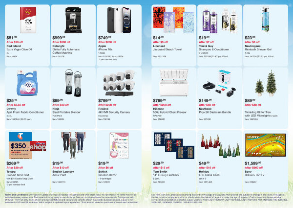 Terms and Conditions: Only valid in Costco warehouses located in Australia and while stock lasts. No rainchecks. All items may not be available in every warehouse. Purchase limits may apply to certain items. See your local warehouse for more details. Savings are valid 31 / 10 / 25- 16 / 11 / 25 only. Items shown are representations and colours and variants shown may not be available on sale. Liquor is not available in QLD and SA locations. WA is subject to updated liquor legislation. * Total amount saved on purchase of one of each advertised