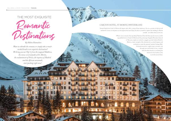 What is more romantic than spending Valentine ’ s Day with that special someone amidst unparalleled views of Lake St . Moritz and the picturesque Engadin Mountains beyond it ? This year , couples are invited to snuggle up at the Carlton Hotel St . Moritz , a classic example of the destination ’ s renowned elegance and exclusivity , to enjoy the property ’ s private Carriage Ride . A fairytale excursion , couples enjoy a romantic ride through town and fondue for two , complete with decadent desserts to eat during the ride back to the Carlton as the snow falls around them .