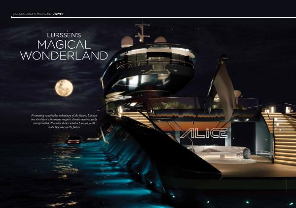 Promoting sustainable technology of the future , Lürssen has developed a futuristic magical climate-neutral yacht concept called Alice that shows what a Lürssen yacht could look like in the future