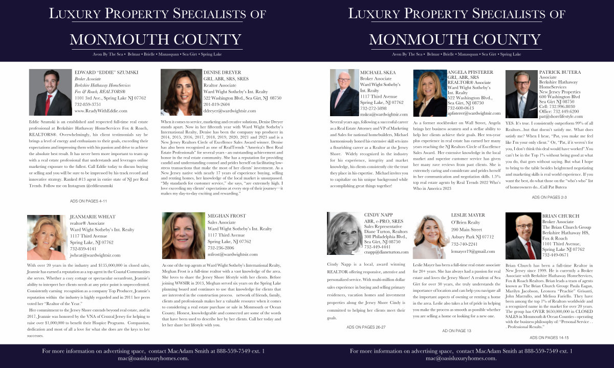 EDWARD“ EDDIE” SZUMSKI Broker Associate Berkshire Hathaway HomeServices Fox & Roach, REALTORS ® 1101 3rd Ave., Spring Lake NJ 07762 732-859-3751 www. ReadyWithEddie. com