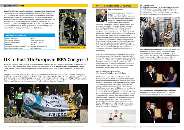 The Awards and Sponsorship Committee oversees the Society ' s sponsorship schemes and organises the judging for prizes awarded for best presentation and poster at the Annual Conference , including the biennial Young Professionals Award . The pandemic resulted in fewer physical conferences and meetings in 2021 and consequently there was less call on funds for attendance . However , ASC was able to contribute to the Charter objectives by granting sponsorship for two overseas students attending post-graduate courses and , under the Educational Resources Development Scheme , for a project at the University of Bristol to develop a virtual reality system for use in Nuclear Engineering . This will be demonstrated at the SRP ' s Annual Conference in 2022 . We have recently welcomed Kinson Leonard to the committee , and we look forward to being able to award prizes for presentations at SRP ' s Annual Conference in 2022 , as well as supporting more conference and course attendance .