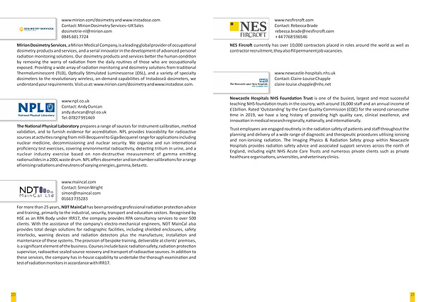 For more than 25 years , NDT MainCal has been providing professional radia on protec on advice and training , primarily to the industrial , security , transport and educa on sectors . Recognised by HSE as an RPA Body under IRR17 , the company provides RPA consultancy services to over 500 clients . With the assistance of the company ' s electro-mechanical engineers , NDT MainCal also provides total design solu ons for radiographic facili es , including shielded enclosures , safety interlocks , warning devices and radia on detectors plus the manufacture , installa on and maintenance of these systems . The provision of bespoke training , deliverable at clients ' premises , is a significant element of the business . Courses include basic radia on safety , radia on protec on supervisor , radioac ve sealed source recovery and transport of radioac ve sources . In addi on to these services , the company has in-house capability to undertake the thorough examina on and test of radia on monitors in accordance with IRR17 .