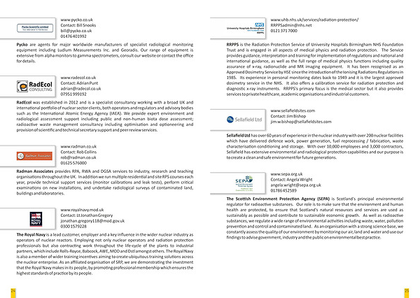 Radman Associates provides RPA , RWA and DGSA services to industry , research and teaching organisa ons throughout the UK . In addi on we run mul ple residen al and site RPS courses each year , provide technical support services ( monitor calibra ons and leak tests ), perform cri cal examina ons on new installa ons , and undertake radiological surveys of contaminated land , buildings and laboratories .