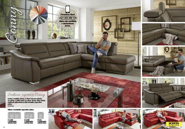 Conny kostra z tvrdého dreva , 2 rôzne tuhosti sedenia na výber , 2 výšky sedu na výber , široký výber farieb , možnosť plánovania podľa bohatého typového plánu 4137879 . xx Sedacia súprava Conny 3-sedák s nastavením opierky hlavy 2-sedák s nastavením opierky hlavy LaVitaCONNY-Lč.artiklzobrazeníč.artiklzobrazeníšvhpopisSofa/kanape53KV 210 84 - 100 104 3-sedák s nastavením opěrky hlavy ; pevné standardní provede 5.13KVW 210 84 - 100 104 3-sedák s nastavením opěrky hlavy ; WA-funkce za příplatek -dvoudílné dodání pro funkčn variantu 62,5KV 184 84 - 100 104 2,5-sedák s nastavením opěrky hlavy ; pevné standardní provede 6.12,5KVW 184 84 - 100 104 2,5-sedák s nastavením opěrky hlavy , područka vlevo nebo vpravo ; WA-funkce za příplate -dvoudílné dodání pro funkčn variantu 72KV 158 84 - 100 104 2-sedák s nastavením opěrky hlavy , potažení zadní části ; pevné standardní provede 7.12KVW 158 84 - 100 104 2-sedák s nastavením opěrky hlavy , područka vlevo nebo vpravo , potažení zadní části ; WA-funkce za příplatek * -dvoudílné dodání pro funkčn variantu Křeslo91KV 98 84 - 100 104 Křeslo s nastavením opěrky hl ( područka odchylné rozměry ) není možné s WA-funkcí - Kreslo s nastavením opierky hlavy LaVitaCONNY-Lč.artiklzobrazeníč.artiklzobrazeníšvhpSofa/kanape53KV 210 84 - 100 104 3- hl pr 5.13KVW 210 84 - 100 104 3- hl -d va 62,5KV 184 84 - 100 104 2 , hl pr 6.12,5KVW 184 84 - 100 104 2 , hl vp -d va 72KV 158 84 - 100 104 2- hl pe 7.12KVW 158 84 - 100 104 2- hl vp W -d va Křeslo91KV 98 84 - 100 104 Kř ( p ne Televizníkřeslo/odpočinkovékřeslo/101DCL 84 110 ODER 113 88 Kř vý Výber z bohatého typového plánu Poradíme Vám ! + 421 253 488 100 Alebo nás navštívte v obchodnom dome . 10