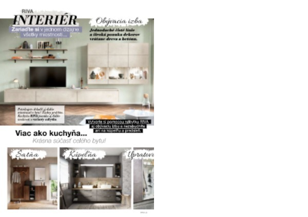 Vytvorte si pomocou nábytku RIVA aj obývaciu izbu a nezabudnite ani na kúpeľňu a predsieň .