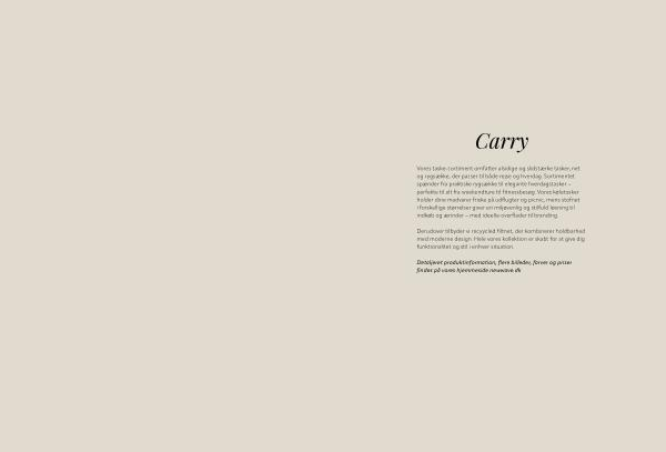 Vores taske-sortiment omfatter alsidige og slidstærke tasker, net og rygsække, der passer til både rejse og hverdag. Sortimentet spænder fra praktiske rygsække til elegante hverdagstasker – perfekte til alt fra weekendture til fitnessbesøg. Vores køletasker holder dine madvarer friske på udflugter og picnic, mens stofnet i forskellige størrelser giver en miljøvenlig og stilfuld løsning til indkøb og ærinder – med ideelle overflader til branding.