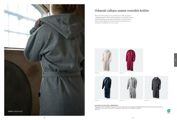 COLLEGEKYLPYTAKKI | KOSTA LINNEWÄFVERI Tuotenumero: 420642 | Väri: Beige 02, Viininpunainen 38, Denim 59, Harmaa 95, Tummanharmaa 97 | Materiaali: 52 % Puuvilla / 48 % Polyesteri( Beige, Harmaa, Denim, Viininpunainen). 60 % Puuvilla / 40 % Polyesteri( Tummanharmaa) | Koko: S / M, L / XL, XXL | Pakkaus: Muovipakkaus Hinta: 49 €