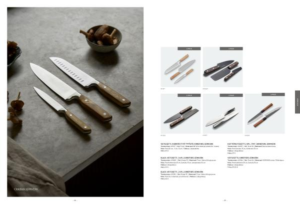 VEITSISETTI | ORREFORS JERNVERK Tuotenumero: 411284 | Väri: Teräs 94 | Materiaali: 5CR15MOV-teräs / Pähkinäpuu Koko: Terät kokkiveitsi 20 cm, Santoku 18 cm Pakkaus: Lahjapakkaus Hinta: 49,50 €