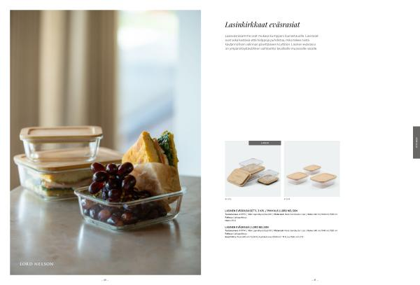 LASINEN EVÄSRASIA | LORD NELSON Tuotenumero: 411194 | Väri: Läpinäkyvä( lasi) 00 | Materiaali: Kansi bambusta / Lasi | Koko: 640 ml, 1040 ml, 1520 ml Pakkaus: Lahjapakkaus Koot / Hinta: Pieni 640 ml / 12,50 €, Keskikokoinen 1040 ml / 19 €, Iso 1520 ml / 21 €