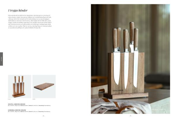 Att använda ett knivställ och en skärbräda i acaciaträ ger en naturlig och stilren känsla i köket. Acaciaträ är hållbart och motståndskraftigt mot fukt, vilket gör det till ett utmärkt val för köksredskap som används dagligen. Skärbrädan är skonsam mot knivarna, vilket hjälper till att hålla dem vassa längre, medan knivstället organiserar och skyddar dina knivar på ett säkert sätt. Kombinationen av funktionalitet och estetik gör matlagningen både enklare och mer njutbar. Med sin varma, naturliga färg och robusta kvalitet är acaciaträ ett pålitligt och vackert tillskott till varje kök.
