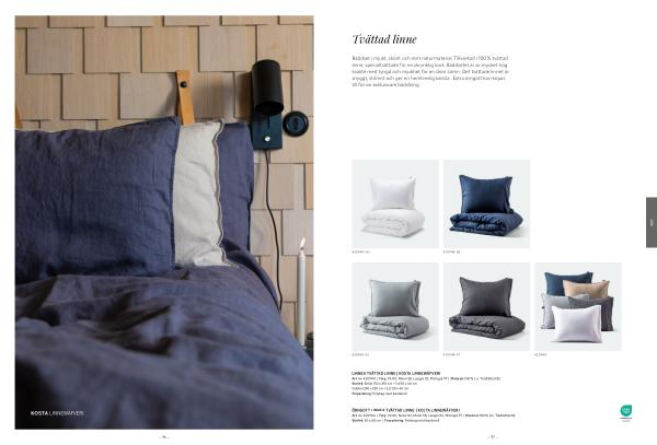 LINNEA TVÄTTAD LINNE | KOSTA LINNEWÄFVERI Art. nr: 420944 | Färg: Vit 00, Marin 58, Ljusgrå 92, Mörkgrå 97 | Material: 100 % Lin. Trådtäthet 82 Storlek: Enkel 150 x 210 cm / 1 st 50 x 60 cm Dubbel 230 x 220 cm / 2 st 50 x 60 cm Förpackning: Polybag med banderoll
