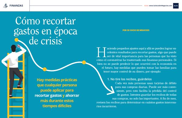 Haciendo pequeños ajustes aquí y allá se pueden lograr excelentes resultados para recortar gastos , algo que puede ser de vital importancia para las personas que ha visto cómo el coronavirus ha trastornado sus finanzas personales . Si bien no se puede predecir lo que ocurrirá con la economía en el futuro , hay medidas que pueden tomar las familias para tener mayor control de su dinero , por ejemplo :