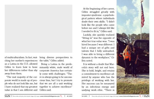 At the beginning of her career , Gillen struggled greatly with impostor syndrome - a psychological pattern where individuals doubt their own skills . “ I didn ’ t look like the people who came before me and I always felt like I needed to fit in ,” Gillen said . Luckily , she quickly realized “ fitting in ” was the opposite of what her true value was . “ I was hired because I was different . I had a unique set of gifts and talents that I fully unleashed . I was able to bring a different dynamic to the workplace ,” Gillen noted . It is without a doubt that Marcela ’ s story will not end here . She is bold , bright , and retains a commitment to excellence admired by anyone who has the privilege of working with her . Her success can be measured by an infectious energy and undying work ethic . “ There is